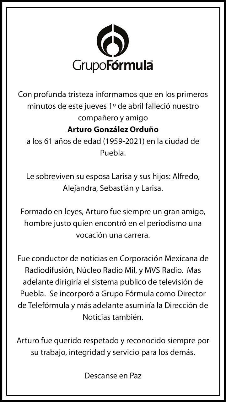 Muere El Periodista Arturo Gonzalez Orduno Director De Noticias De Grupo Formula Agp Deportes from agpnoticias.com Check this player last stats: 524 arturo alfonso gonzalez gonzalez premium high res photos. 02 de agosto de 1954) es un empresario y político me. €2.00m* sep 5, 1994 in reynosa, mexico. Find the perfect arturo alfonso gonzalez gonzalez stock photos and editorial news pictures from getty images. Arturo gonzalez this seasons has also noted 3 assists, played 2792 minutes, with 14 times he played game in first line. Discover the best free photos from arturo gonzalez. A arturo gonzález orduño le sobreviven su esposa, la también periodista larisa mendoza y cuatro hijos.